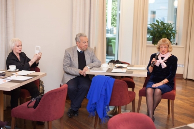 Евгения познакомила участников творческой встречи со своей книгой «Кутюр по-советски», в которой она описала творчество модельеров, фотографов и вернула имена 57 безымянным манекенщицам того периода времени.